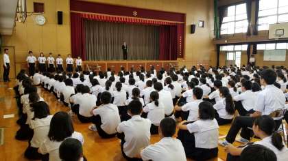 1年生には、高津中学校に入学して驚いたことや印象に残ったことは?という質問をしたところ、教科担任制で先生がかわることや教室移動が大変なこと。また、先輩がきちんと整列し、静かな集会の雰囲気が小学校と違うと答えた人もいたようです。