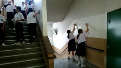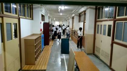 終業式後、全員で大清掃を行いました。雨のためグラウンド周辺の清掃ができず、屋内での活動となりましたが、生徒の皆さんは、ぞうきんやモップを手に「拭き掃除」に汗を流します。おかげさまで、ほこりや汚れが落ちてスッキリきれいになりました。2学期も学校の美化活動に力を注いでくださいね。