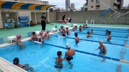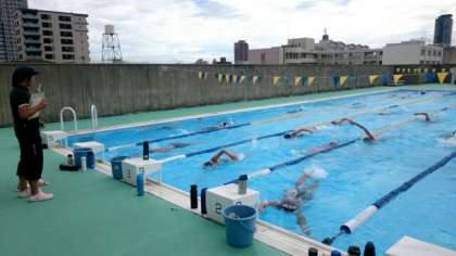 今朝は厚い雲が空を覆い、真夏の強い陽射しもひと休み。暑さが少しやわらぐ中、水泳部の皆さんが懸命に泳いでいます。顧問の先生にうかがうと、昨日は水温が32度あったそうですが、今朝は約28度でずいぶん違いがあるとのこと。しかし油断は禁物です。練習の合間に給水をしっかり採って、熱中症予防に備えます。皆さん、体調に気をつけて泳力アップに頑張ってください!