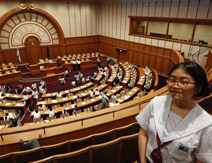 おおさか子ども市会に、生徒会長が代表して参加しました。市役所にある市会本会議場にて、子ども議員からの意見発表、市長答弁が行われます。