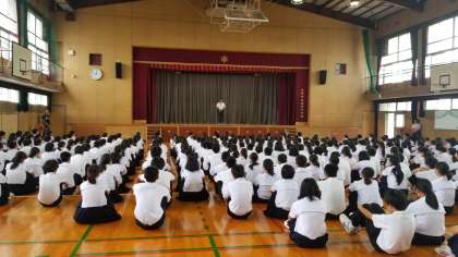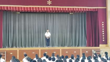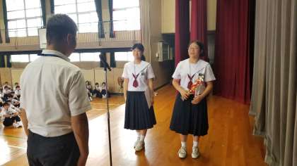 本日は、全校登校日で集会がありました。日焼けした元気な顔をした生徒がたくさん登校してくれました。