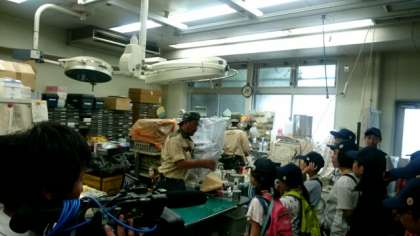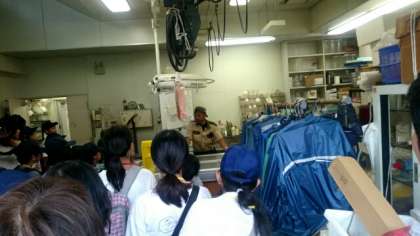 「調理室」見学後は「診察室」へ。病気やケガをした動物たちの診察・治療を行うところです。部屋には大きな診察台が設置され、薬品ケースには数々のお薬がならびます。動物によっては人間のお薬を利用するケースもあるとのこと。普段見ることができない場所を見学させていただきました。