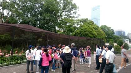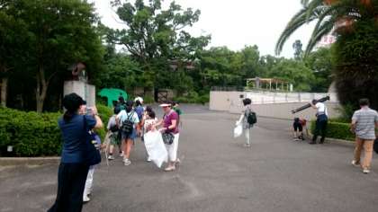 バックヤード見学後、ジュニアクラブの皆さんで園内の清掃を行いました。休園日の園内は人の気配も無く、ひっそりとしています。皆さんは、歩道や植え込みなどポイ捨てされたゴミが無いか、熱心に探していました。今回の活動を通して、動物園の知らない一面を学ぶことができ動物たちへの興味・関心がより高まりました。天王寺動物園の職員の皆さん、ありがとうございました。