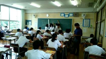 今日から授業再開です。2年生では夏休みをどう過ごしたか、英語でやりとりしています。「部活の練習に励みました」「○○へ旅行に行きました」などを英語で答え、それらの返答を黒板に英文で記していきます。皆さん、充実した夏休みを過ごせて良かったですね。