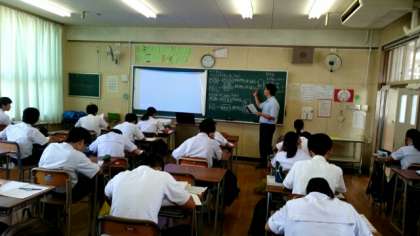 2年生理科で「脳のはたらき」を学んでいます。一般的に、私たちの脳は体重の約2%しかない一方で、身体全体で使うエネルギーの約20%を消費するそうです。生命の維持をはじめ、目や耳から入ってくる情報の処理など、脳には多くの役割があることを学習した後、少し休憩(コーヒーブレイク)が入ります。黒板にトリックアートを映し出し、何が隠れているか、みんなで探しました。目の錯覚も、脳の情報処理と関係があるようですね。