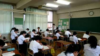 昨日午後、高校の先生方17名が高津中を訪問されました。中学校の教育活動をご覧になり、高校での実践に活かしていく取り組みです。今回は2年生道徳の授業を見ていただきました。授業後、生徒1人1人の意見や考えを引き出す工夫や、(中学校の)授業で心掛けていることなど、中高の先生方で意見交換・交流も行いました。