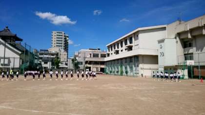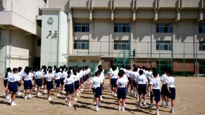 体育大会に向けた入場行進の練習が1年生でスタートしました。最初は先生の笛の合図にあわせて、足踏み・腕ふりから始めます。ある程度リズムを把握した後、クラス毎に行進してみますが、なかなか隊列が揃いません。もう少し練習すれば、きっと上手になりますよ!皆さんの上達を楽しみにしています。