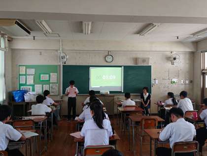 キャリア教育「まわりの人にきいてみよう」平和学習「平和について考えてみよう」のどちらかのテーマを選び、夏休みに聞き取ったことを2年生の各クラスで発表しました。