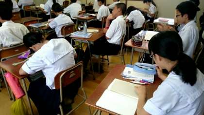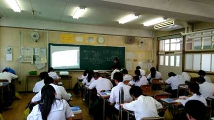1年生数学で「1次方程式」を学習中。方程式を使った計算の進め方を習った後は、購入したリンゴ・オレンジそれぞれの個数を問う文章題を解いていきます。数学ではよく出されるタイプの問題です。先生の説明をしっかり聴いて解法をマスターしましょう。