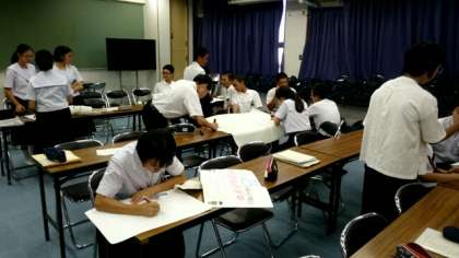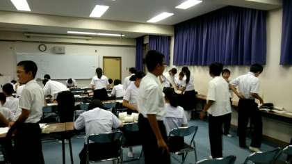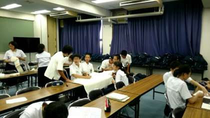 昨日の放課後、各クラスの選挙管理委員、後期生徒会役員に立候補する皆さんが集まり、生徒会選挙の準備を行いました。校舎内に掲示するポスターや立候補者のタスキ、応援演説の原稿づくりなど、準備に大忙し。立会演説会は10月4日(金)を予定しています。より良い学校生活をめざして、頑張ってくださいね!