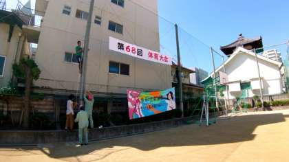 体育大会の会場準備が始まりました。給食をいただいた後、係生徒の皆さんが集まってそれぞれのお仕事に励んでいます。暑い中ですが、協力して取り組んでくださいね。