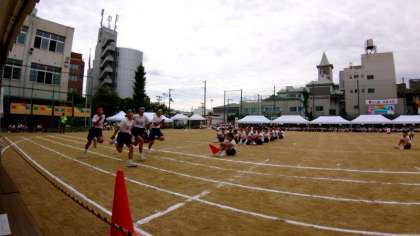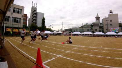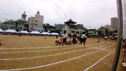 競技がスタートしました。最初は「男子200m走」。グラウンドを1周+α走ります。さすが男子のレースは迫力満点です。
