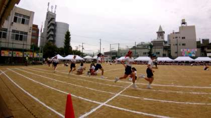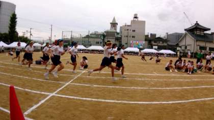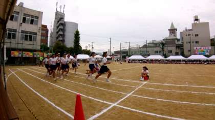 男子1500m走に続いて、「女子800m走」がスタートしました。女子12名はグラウンドを5周走ります。全力では呼吸が保てませんし、ゆっくりでは上位をねらえない悩ましい距離。ペース配分を意識して、ベストをめざしてください!