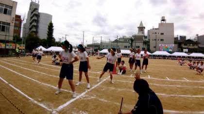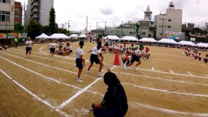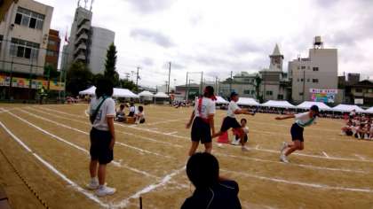 午後の部はリレー種目が続きます。まずは「女子800mリレー」から。各クラス4名の選手がグラウンド1周づつ、バトンをつなぎます。1位になると得点が12点加算されるので、優勝に1歩近づきますね。皆さん、頑張ってください!