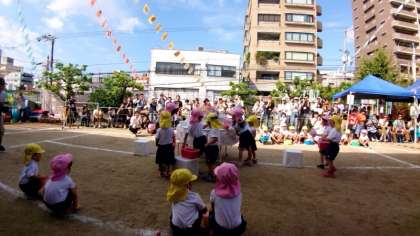 先週土曜日、校区の味原幼稚園で「うんどうかい」が開催されました。さわやかな秋空の下、園児たちが元気いっぱい演技や競技を頑張りました。幼稚園の先生方をはじめ、PTA・保護者・地域の皆さまが、ふだんから子どもたちを温かく導き、見守られていることが感じられる運動会でした。