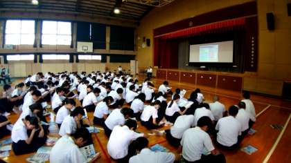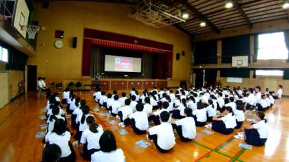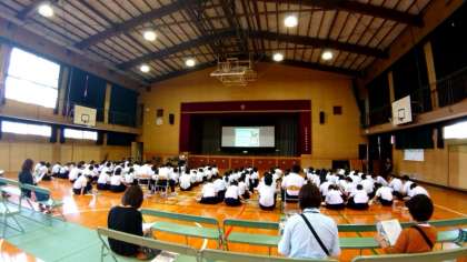 本日6時間目、高等学校の先生方に来ていただき「公立高校説明会」を行いました。3年生全員で3つの高校の特色を教わります。日々の学習をはじめ、体育祭・文化祭などの学校行事や、高校卒業後の進路についてくわしく紹介していただきました。3年生の皆さんにとって、今日のお話をしっかり聞いて自らの進路選択を考える参考になれば良いですね。