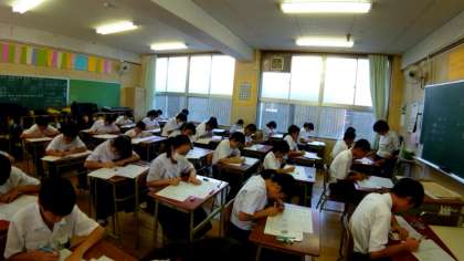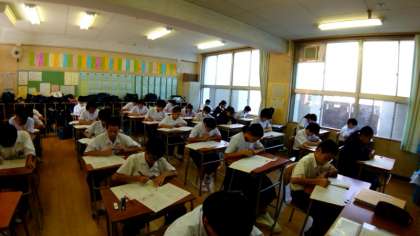 (上から)社会科のテストが始まりました。みんな頑張って!