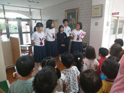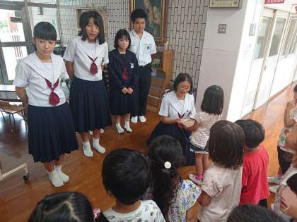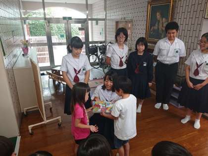 前期生徒会役員の皆さんが味原幼稚園を訪問します。生徒会の皆さんの訪問に園児たちも興味津々です。プレゼントの絵本に加え、中学校の体育大会で渡す予定だった「ジグソーパズル」も持っていきました。スヌーピーのイラストが描かれたパズルです。喜んで遊んでくれるかな?