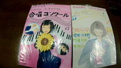 10月26日(土)の土曜授業で1年生が合唱コンクールに取り組みます。(2,3年は授業参観を実施します)この度、コンクールにむけて美術部の皆さんが素敵なポスターを作ってくれました。学校の外壁などに掲示し、保護者や地域の方々にご覧いただく予定です。当日のご来場をお待ちしております!