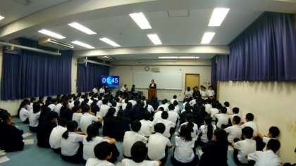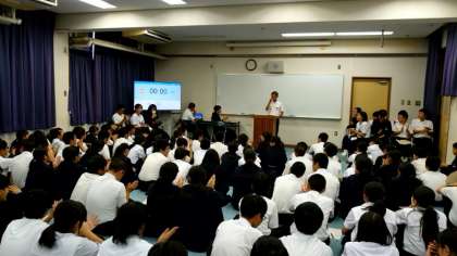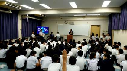 昨日、2年生全員で「ビブリオバトル」を開催しました。各クラスより選ばれた計8名の選手(バトラー)がおすすめの本を紹介します。作品の面白さや注目点などを感情こめてPR。どの紹介も上手で「読んでみたいな」と思わせる内容でした。この後、学年代表1名を決定するとのこと。結果が楽しみですね。