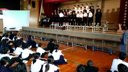 来週土曜日にせまった1年生合唱コンクール。現在、体育館でリハーサルを行っています。自席から舞台にあがる手順を覚えていきます。本番ではカーテンが引かれ、会場が真っ暗になるので、ひな壇に上がる際はくれぐれも気を付けてくださいね。