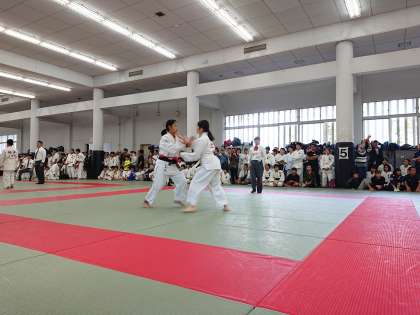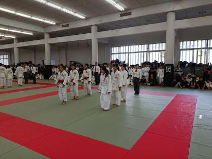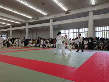 大阪城公園内の修道館で、柔道部が府大会に出場しました。新人女子団体、1年生3人で挑みました。相手校は、三原西の黒帯2年生チームです。みんな果敢に攻めましたが、力及ばず一回戦負けとなりました。