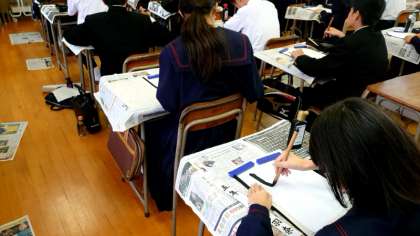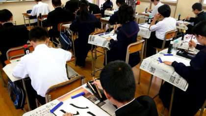 1年生が書写の学習に取り組んでいます。書写の授業も今日で3回目。前回に続き基本的な筆使い(折れ、曲がり、そり、点‥)を練習します。毛筆の筆圧や穂先の向きに注意しながら練習をくり返します。急いで書くとミスしやすいですね。ゆっくり落ち着いて書きましょう。