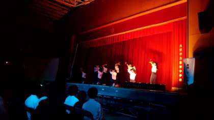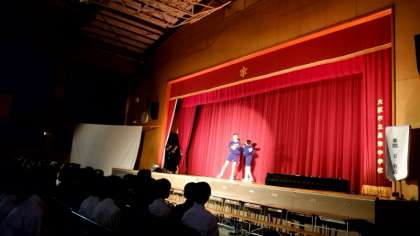 1年生全員合唱で使ったひな壇を片づける間、2年生有志の皆さんがダンスパフォーマンスを披露します。みんなのステップや振りを合わせるのは大変だったと思います。皆さんの努力がキラリと光るダンスでした。