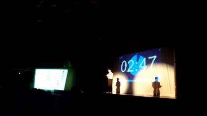 国語科では「ビブリオバトル」を発表しました。各学年から1名だけ選出された代表者が「おすすめ本」を紹介します。制限時間わずか3分で本のおもしろさを伝えるのはとても難しいですが、表情豊かにおすすめ本の魅力を語る姿に、会場の皆さんが引き込まれていました。