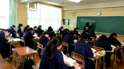 3,4組女子の皆さん、ニコニコして授業を聞いています
