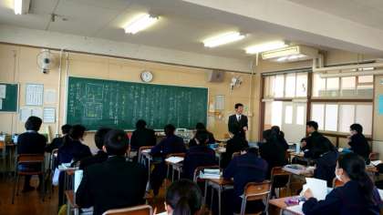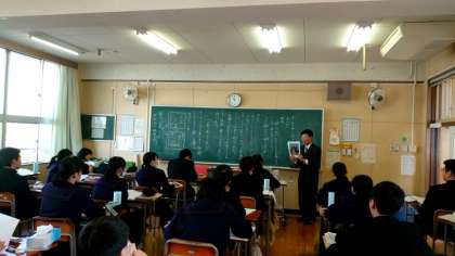 3年生国語科で、中国の小説家 魯迅(ろじん)の短編小説「故郷」を鑑賞中。辛亥革命後、清朝が倒れ中華民国が成立した当時(1920年代)の中国を題材に描かれた本作。登場人物の心の動きをていねいに読み解きながら授業がすすみます。中学校国語ではよく扱われる作品とのこと。「読書の秋」にふさわしい授業です。