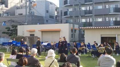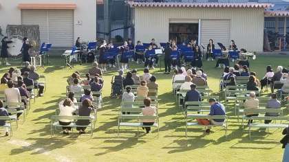 本日2時00分より味原小学校にて、芝生のうえで音楽会がありました。
