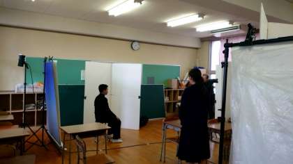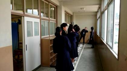(上から)クラス毎に撮影場所に移動します