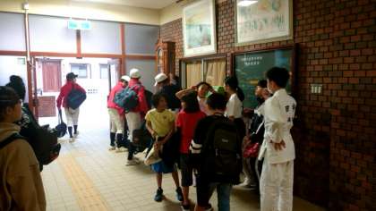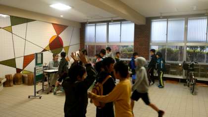 今日は、校区の小学生(希望者)を招いて中学校の部活動を体験する「ベアーズ」の活動日。放課後、小学生の皆さんが続々と中学校に集まります。部活の服装に身を包んだ中学生が小学生を連れて活動場所へと向かいます。年内の活動は今日が最後。来年は1月15日(水)に活動を予定しています。