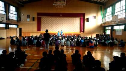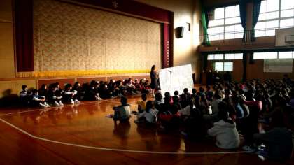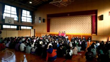 昨日、校区の味原小・真田山小の6年生の皆さんが来校し、中1生徒と英語で交流する「英語インタビュー」を実施しました。まずは中1生が高津中のクラブ活動について英語で紹介します。この日のために英語でのスピーチを練習してきました。上手く伝わりましたか?