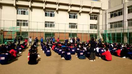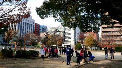 現在1,2年生の皆さんが「ふれあい清掃」活動中です。校区の7つの公園に行って清掃活動に取り組みます。今日は風も無く冬の陽射しが暖かく届く、絶好のお掃除日和(?)皆さん頑張って落ち葉を集めていました。