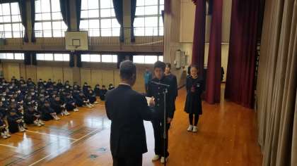 また、読書感想文コンクールや野球部の大阪市選抜選手の、伝達表彰を行いました。