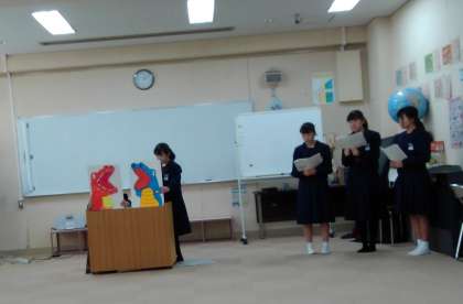 本校から1年生保健委員が小学校へ行き、小学校2年生に口と歯の健康について紙芝居をしました。クイズもしながら楽しい小中連携ができました。