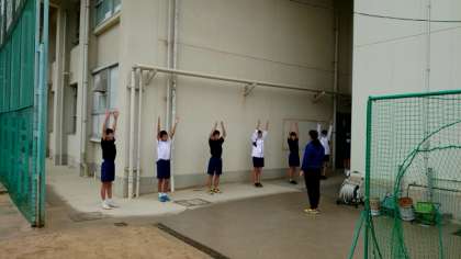 腕の振りに大切な、肩のストレッチを教わります