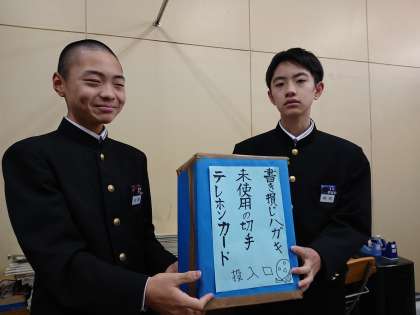 生徒会から、「書き損じハガキ・未使用の切手・テレホンカード」の寄付のお願いです。1枚、2枚でも結構ですので、ご協力よろしくお願いいたします。集めた寄付は、視覚障がい者のためにつかわれます。