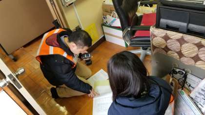 本日、大阪市震災総合訓練がおこなわれました。本校も避難所にあたつていますので、区役所の方々が地域本部に連絡する確認訓練をしました。