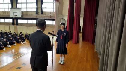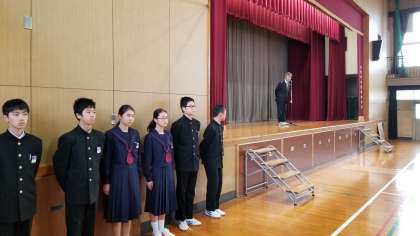また、美術部が大阪城絵画コンクールで優秀賞をいただいたので伝達表彰を行いました。おめでとうございます。