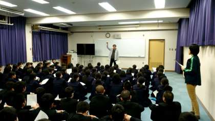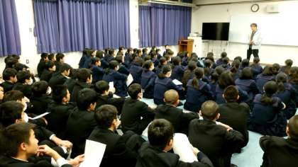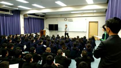 学年末テスト(2日目)が終わりました。3年生の皆さんが集まり、私立高校願書出願についてお話を聞いています。出願は明日(1月24日)のテスト終了後(昼食を準備してね)。持ち物や心構えなど、出願に係る注意点を教わりました。くれぐれもトラブルが無いよう気をつけてください。