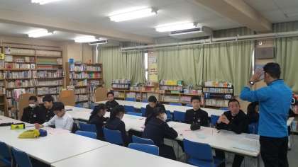 あいさつから始まり質問など、だれが話すかなど分担を決めて実際に練習しました。。