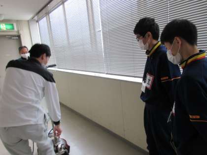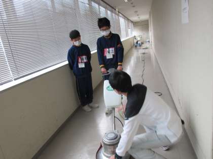 清掃業務です。機械でフロアを磨きます。