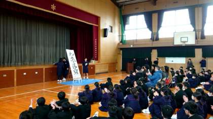 日本の伝統文化として、柔道・合気道・書道の3つを紹介しました。書道では「和敬清寂(わけいせいじゃく)」という言葉を書きました。(お客様をお迎えするときに)互いに敬いあい、心を開いて仲良くするという意味だそうです。国際交流学習にピッタリの言葉ですね。