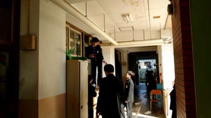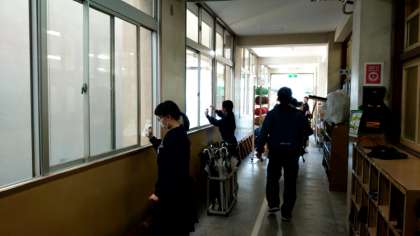 本日、全学年一斉に「大清掃」を行いました。2月とは思えない陽気の下、1年生の皆さんが清掃に励んでいます。運動場側のエリア本当に温かく、皆さんうっすらと汗を浮かべながら頑張っていました。