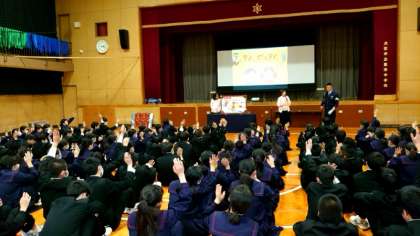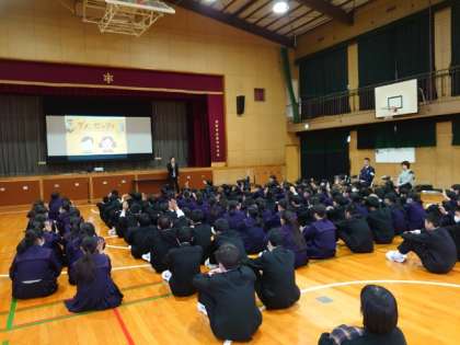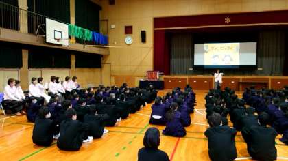 天王寺区の保護司さん・更生保護女性会の皆さんが来られ、1年生の皆さんにお話ししてくださいました。「更生保護」は非行や問題行動をおこした人の立ち直りを支援するしくみのこと。過ちを悔い改め、世の中で頑張っていけるよう温かく見守ってくださっています。いろんな方々が社会のために貢献してくださっていることを学べましたね。