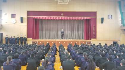 本日、全校集会をおこないました。