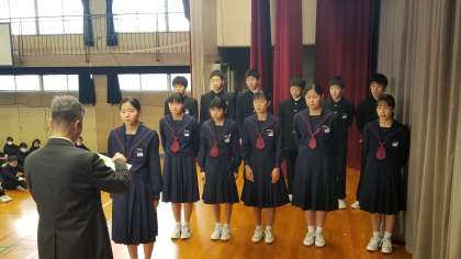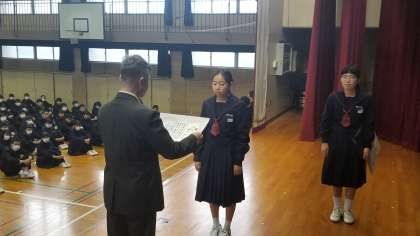 また、陸上部の駅伝、学校の体育の授業の真田山公園杯、絵画コンクールの伝達表彰がありました。